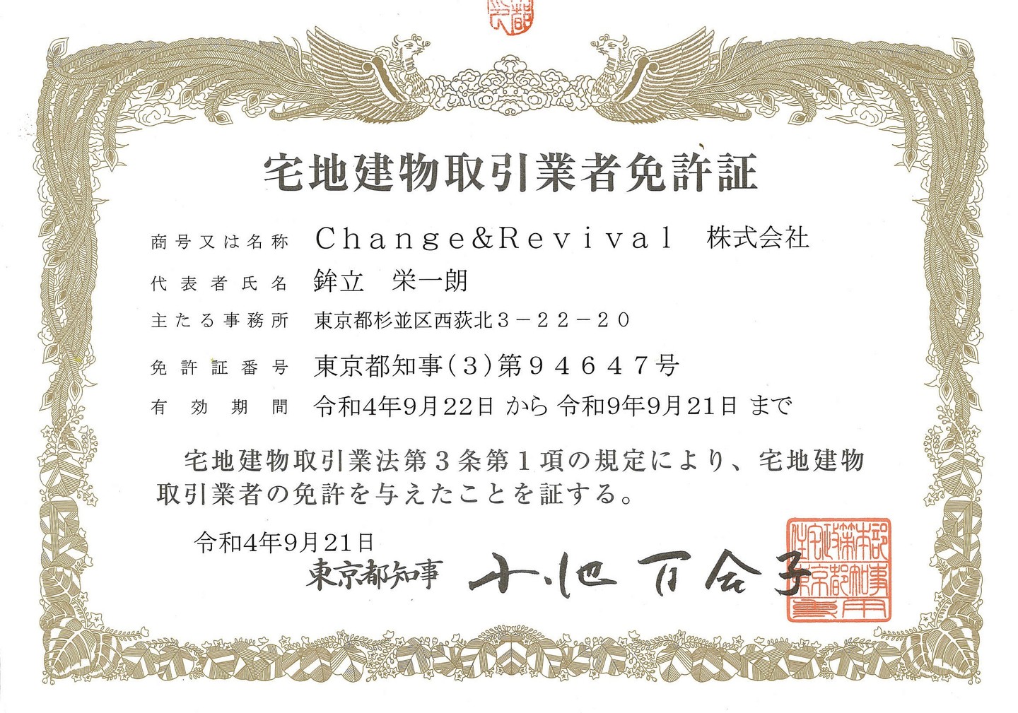 (宅地建物取引業免許 東京都知事(3)第94647号)